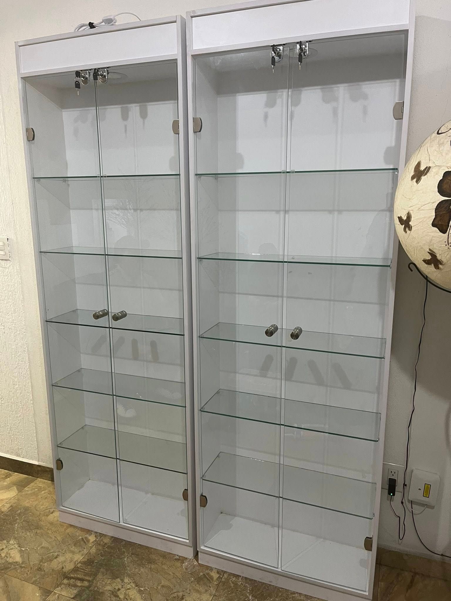 Fabricación en cristal templado y acero inoxidable con diseño moderno, firme y de bajo mantenimiento.